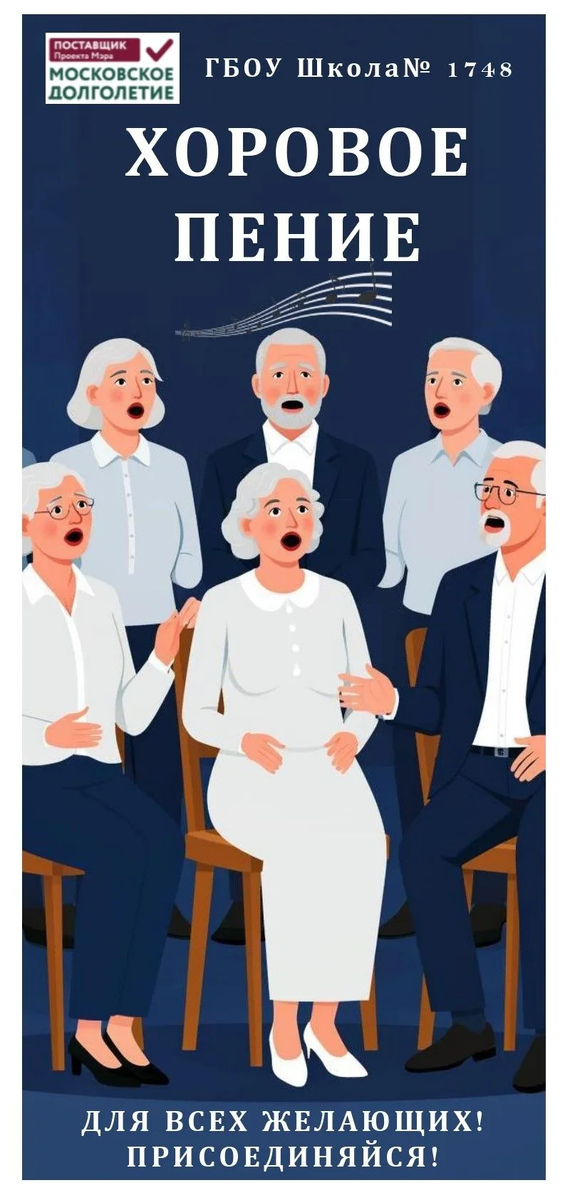 🎶 Хоровое пение для граждан старшего поколения. Приглашаем вас окунуться в мир музыки и гармонии! ✨ Что мы предлагаем? Занятия по хоровому пению для всех желающих насладиться искусством вокала и обрести новых друзей. 🏠 Где проходят занятия? Адрес: ул. 15 Парковая, д. 52А 👩🎤 Кто ведет занятия? Педагог — Марина Александровна Резанова, преподаватель с многолетним опытом работы. ⏰ Расписание занятий: вторник, четверг — с 14:30 до 15:30 🌟 Почему стоит присоединиться? Развитие музыкального слуха и голоса
