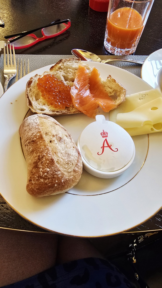 Завтрак в Историческом здании Астории это действитеоьно неторопливая церемония, с видом на Исаакеевский Собор в исторической части Питера , сквозь стеклянеые витражные, арочные окна, в красивом зале с картинами в рамах , старинными винтажными люстрами, официантами, тонким императорским фарфором, сервированным по всем правилам столом из натурального дерева (не все столы правда, с белыми скатертями, не все круглые. Удивило меня и отсутствие фортепиано с живой музыкой. Обычно белый рояль есть везде в статусных местах . В том же Редиссон он был и это красиво, атмосферно пианист в костюме за белым роялем , с тонкими пальцами на клавишах или Арфа и звуки живой музыки ;) , с тяжелыми приборами под старину, тихими, приглушенными голосами за соседними столами, свободной посадкой. Это дорогая атмосфера Старого Питера . Неторопливость и неспешность, как и манеры, элегантность в деталях, мало кто может себе позволить, это дорого. Это не бегать по залу шведского стола Турции, Греции и тд в купальнике и шертах в толпе отдыхающих , среди падающих тарелок , крика, смеха, музыки, пляжных сумок , айфонов с мультфильмами на столах и пр ;)