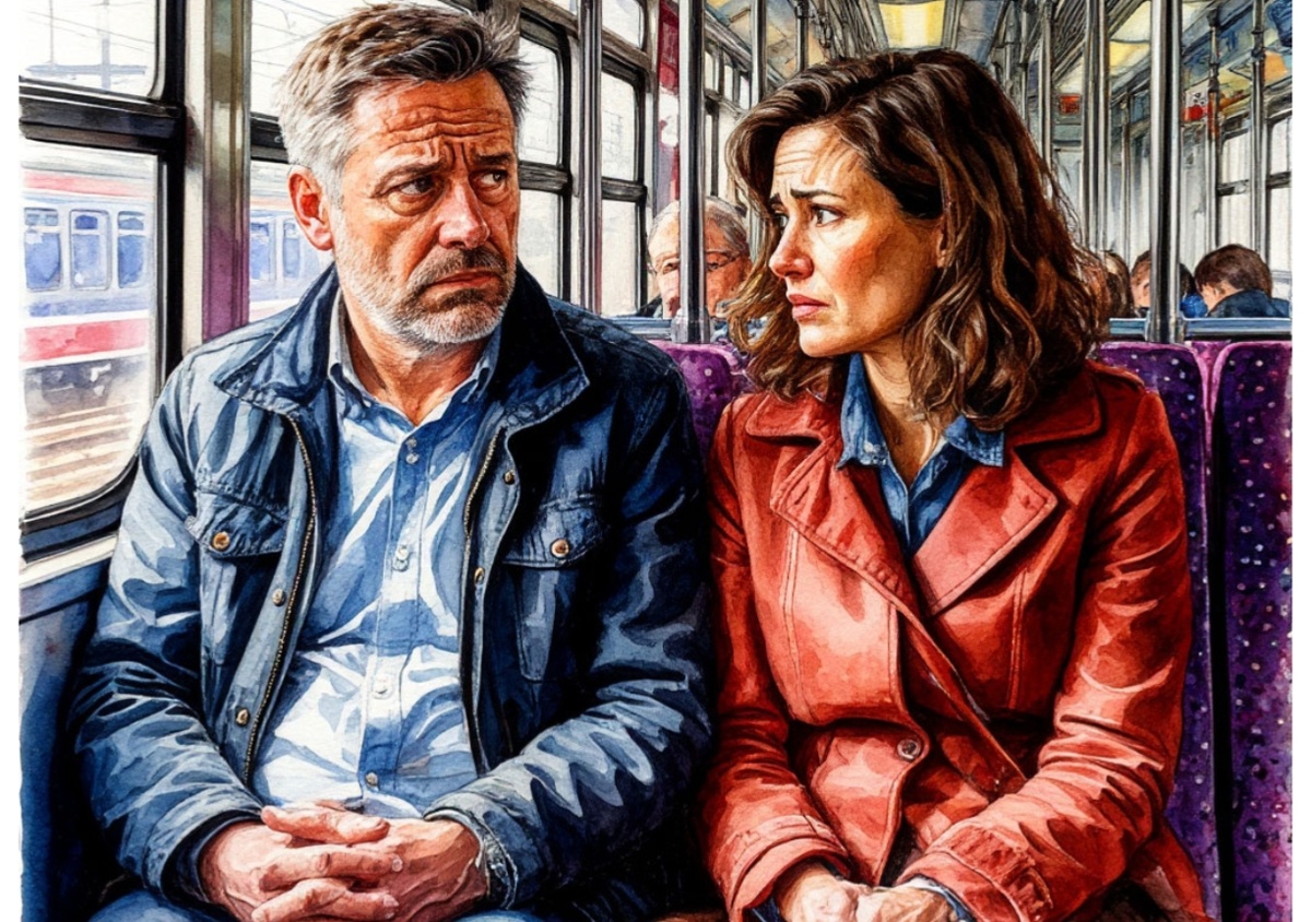 Десять лет они сидели в двух метрах друг от друга. Он — с медицинским журналом и пакетом из «Вкусвилла» для дочери. Она — на боковушке, вжавшись в стенку, с цветами из своего магазина и потрёпанной сумкой.
