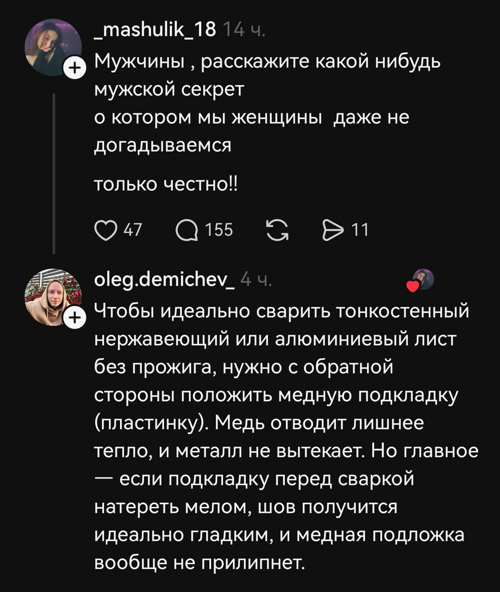 Парень из тредс раскрыл главный мужской секрет! 🤫