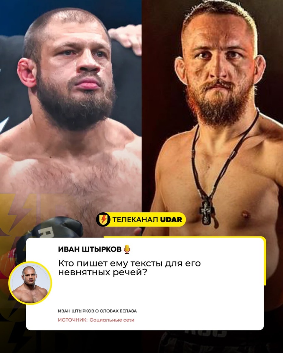 Противостояние Рагозина и Белаза становится интересным из-за вовлеченности в результат боя Ивана Штыркова, который пообещал Белазу тяжелейшую ночь в карьере. Однако, Белаз в интервью заявил, что у Штыркова проблемы с юмором и предложил Рагозину выбрать раунд, в котором закончится бой. "Кто пишет ему тексты для его невнятных речей?" - подытожил Иван Штырков в социальных сетях Поединок пройдет на турнире RCC 25 в Екатеринбурге. 👍Поддержи наш канал cвоим голосом 📺Смотрим бои в прямом эфире ⚡ @teleudar