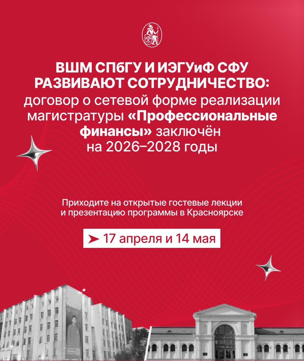 новый договор о сетевой форме реализации магистерской программы «Профессиональные финансы» на три года — до 2028 года включительно. Решение о развитии магистратуры «Профессиональные финансы» сразу на 3 года стало прямым следствием высокого спроса на программу в первый год приёма. Трёхлетний договор — это гарантия для абитуриентов и работодателей: программа будет работать, развиваться и выпускать специалистов для организаций Красноярского края на системной основе как минимум до 2030 года. «Интерес абитуриентов и работодателей в первый же год убедил нас: программа отвечает реальным запросам рынка труда Красноярского края. Преподаватели ВШМ СПбГУ приезжают в Красноярск и работают со студентами непосредственно в новой гибридной аудитории ИЭГУиФ СФУ: такой формат взаимодействия показывает более эффективный образовательный результат, чем просто онлайн. Все преподаватели программы прошли подготовку по методологии гибридного формата от Центра преподавательского мастерства в бизнес-образовани