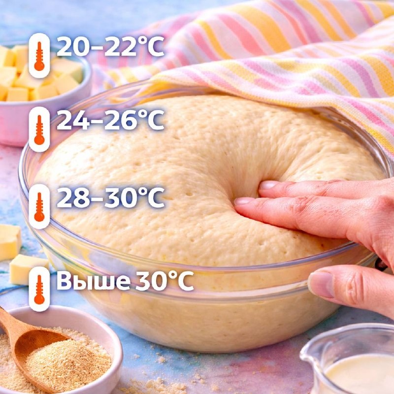 ? Время расстойки — это не про «по часам», а про температуру. Именно она решает, как быстро тесто поднимется и какой будет результат: 🟡20–22°C (прохладно) Тесто поднимается медленно — примерно 2–3 часа. Зато вкус получается более насыщенным, а структура — лучше. 🟡24–26°C (комфортная температура) Оптимальные условия: тесто подходит за 1–1,5 часа. Это классический вариант для большинства рецептов. 🟡28–30°C (тепло) Расстойка ускоряется — 40–60 минут. Но важно не перегреть: тесто может перекиснуть и потерять форму. 🟡Выше 30°C Процесс идёт слишком быстро: дрожжи работают агрессивно, структура ухудшается, вкус становится «плоским». 🛍 Наши товары на Ozon и Wb