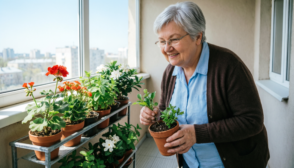 Черенки она начала собирать после смерти Михаила. Семь лет назад. Сначала это было просто что-то, чем занять руки. Потом стало больше. Потом — необходимостью. Она дарила укоренившиеся растения соседям, знакомым, незнакомым людям на рынке. Бесплатно. Просто так. Люди брали, удивлялись, говорили «спасибо». Иногда приходили снова — уже за советом, за другим черенком. Однажды молодая женщина из третьего подъезда пришла со слезами: «У меня умерла мама, она так любила герань, а у меня ни одного цветка дома. Можете дать?» Валентина Степановна дала ей четыре горшка и ещё пять черенков в придачу.