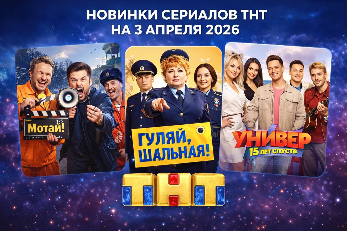 На начало апреля 2026 года программная сетка ТНТ выглядит довольно чётко. Зрители уже могут оценить мартовские комедийные проекты «Мотай!» и «Гуляй, Шальная!», а также вышедшую ранее «Госзащиту». Основным событием текущего месяца станет возвращение «Универ. 15 лет спустя», первые серии которого покажут 13 апреля. Конечно, прямо сейчас телеканал не устраивает массовый день премьер. Зато у него готов полноценный весенний блок контента, где легко подобрать шоу на вечер или отложить в закладки. Чтобы не блуждать по полной программе эфира, мы выделили самые стоящие варианты для просмотра.