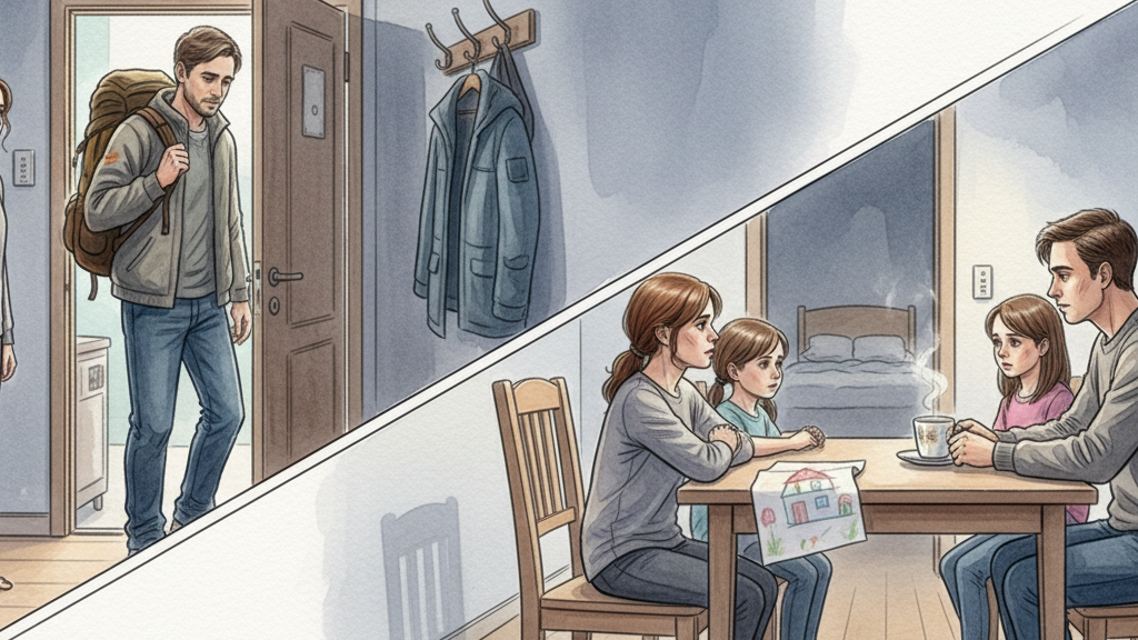 Он зашёл в четверг вечером, поставил рюкзак у порога и огляделся — как впервые попавший в чужое помещение. Алексей снял куртку и повесил её на крючок. Движения были правильные, привычные — он всегда вешал куртку на этот крючок, левый, второй от двери. Но что-то в том, как он это делал, было не его. Рита смотрела на его руки и не могла понять что именно.