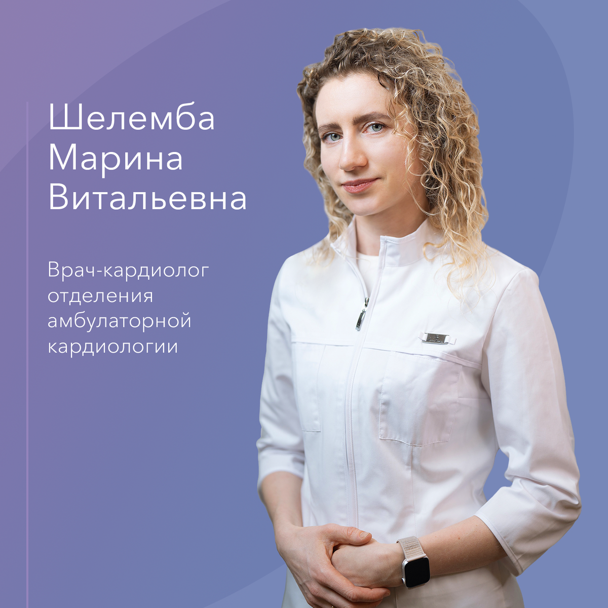 Шелемба Марина Витальевна — грамотный и располагающий к себе врач-кардиолог отделения амбулаторной кардиологии. Внимательна к деталям, доступно объясняет все особенности заболевания. Дополнительное образование по функциональной диагностике позволяет ей самостоятельно оценивать работу сердца и на основе объективных данных выбирать оптимальную тактику лечения. Марина Витальевна специализируется на лечении пациентов с артериальной гипертензией, ишемической болезнью сердца, нарушениями ритма, фибрилляцией предсердий и хронической сердечной недостаточностью. Она сопровождает больных после инфаркта и кардиохирургических операций — стентирования, шунтирования, протезирования клапанов и аорты. Контролирует липидный профиль (холестерин и др.), чтобы снизить атеросклеротическую нагрузку на сосуды. Доктор регулярно проходит дополнительное обучение по ключевым направлениям кардиологии: от ведения пациентов при остром коронарном синдроме, аневризме и расслоении аорты до экспертизы временной нетрудо