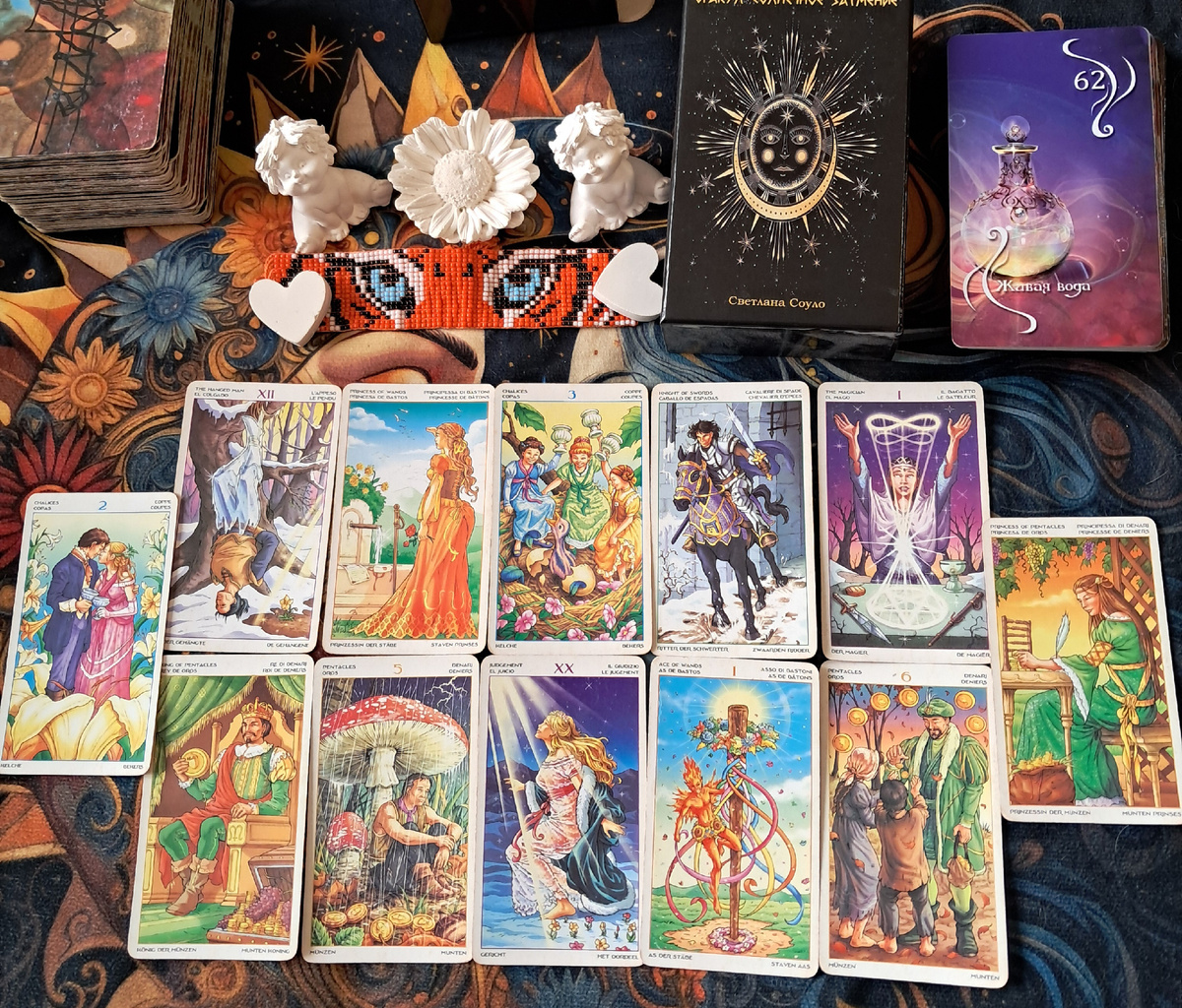 Духи предков действительно говорят с вами через этот расклад. Карты выстроились как дорога посвящения: от жертвы и переворота (Повешенный) к радостному соединению (2 кубков). Вот их послание — о вашем пройденном пути и главный совет.