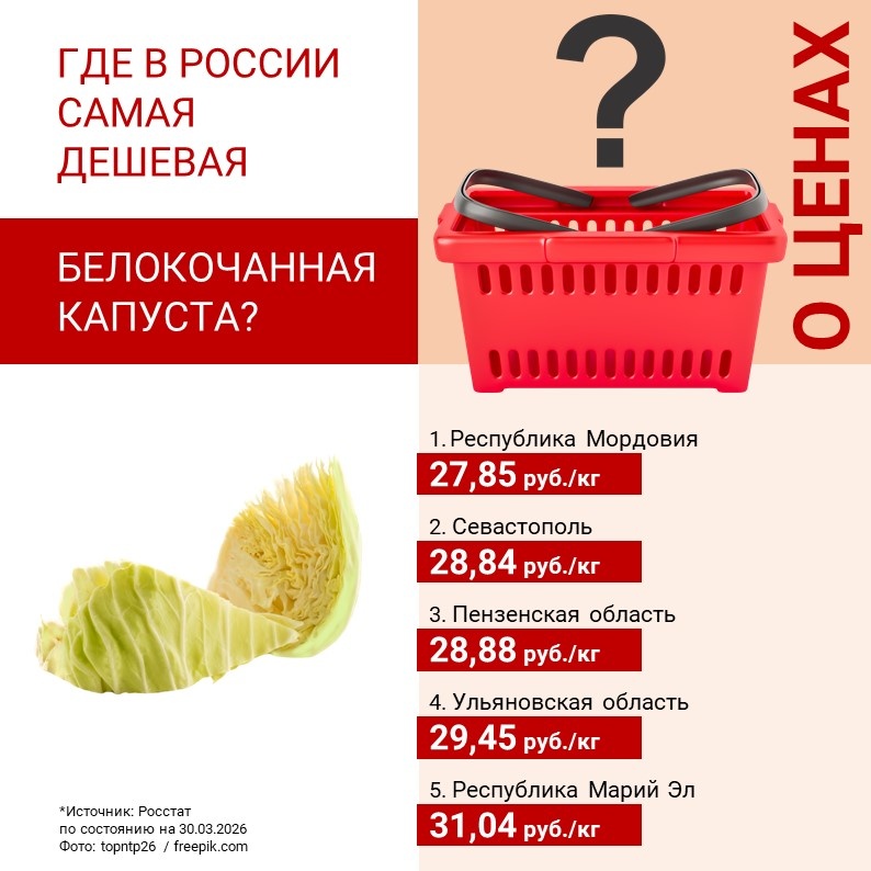 В ФГБУ «Центр Агроаналитики» выявили регионы России, где выгоднее всего приобрести свежую белокочанную капусту и морковь. Лидером доступности этих овощей для населения стала Республика Мордовия ПФО. Самые низкие розничные цены на капусту наблюдались и в других субъектах ПФО: Пензенской и Ульяновской областях, Республике Марий Эл, а также в Севастополе ЮФО. Кроме того, экономные покупки моркови совершали жители Нижегородской и Саратовской областей ПФО, Липецкой и Брянской областей ЦФО.