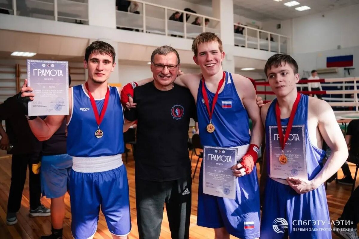 » 🏆 Студенты Юридического института имени Е.А. Энгеля Санкт-Петербургского ГАУ продемонстрировали выдающиеся спортивные результаты на межвузовском турнире по боксу «Кубок четырех», который прошел на площадке СПбГЭТУ «ЛЭТИ». Соревнования были посвящены памяти известного тренера С.А. Панкратьева. Представители нашего университета показали высокий класс ведения боя, несгибаемую волю к победе и блестящую технику, завоевав высшие награды сразу в трех весовых категориях. Обладателями золотых медалей стали: 1. Бинеталиев Шихзада 2. Евгений Стуков 3. Магомед Алиев Руководство института и студенческий актив поздравляют чемпионов с заслуженной победой! Особую благодарность за профессионализм, поддержку и отличную физическую подготовку наших спортсменов выражаем преподавателям и тренерам кафедры физического воспитания СПбГАУ. Желаем ребятам новых спортивных высот и побед на ринге! 🎉