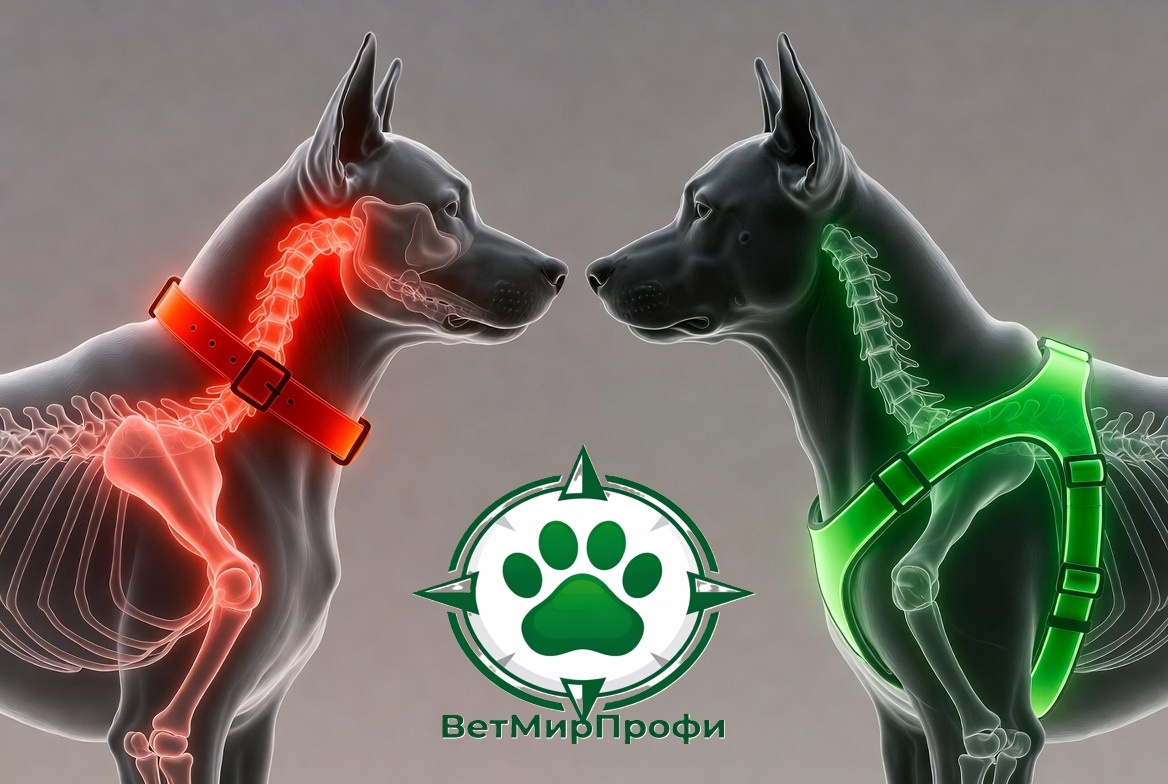 Многие выбирают амуницию по цвету или цене, но в «ВетМирПрофи» мы смотрим глубже — на рентгеновские снимки. Знаете ли вы, что один резкий рывок на ошейнике может привести к микротравмам, которые аукнутся собаке через годы? Почему ошейник — это не всегда ок?