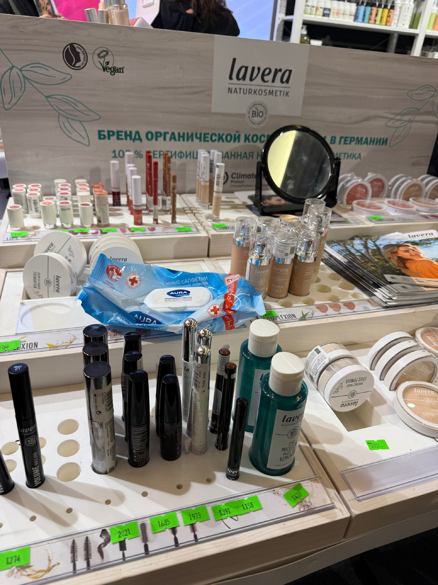 Далее шли фирмы, которые не особо заинтересовали. Выглядят максимально экологично, но ничего интересного для себя не купила. Заметен небольшой вайб компании Ив Роше.