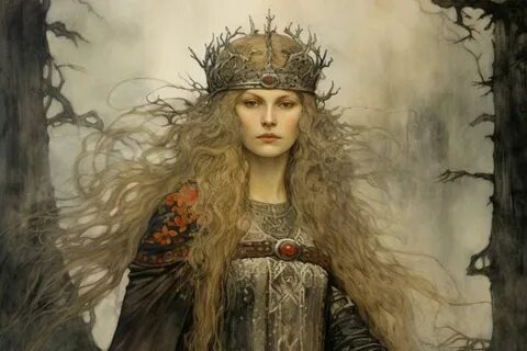В сердце Асгарда, в чертогах Фенсалир, где воздух пропитан ароматами ладана, а в очаге вечно горит магический огонь, восседает Фригг — верховная богиня скандинавского пантеона. Она не просто жена Одина, а его равная — мудрая, проницательная, владеющая тайнами, которые недоступны даже богам.