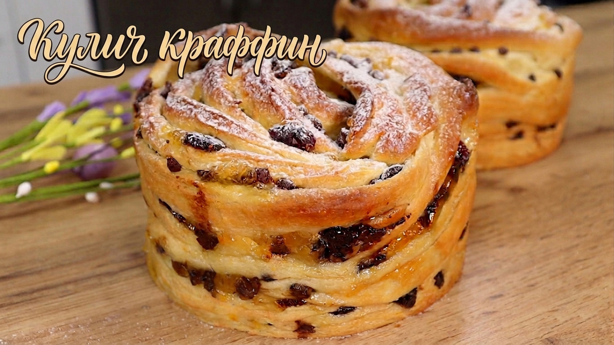 Сегодня приготовим кулич Краффин. Это эффектная пасхальная выпечка с тонким слоистым мякишем и богатым ароматом цитрусовых.