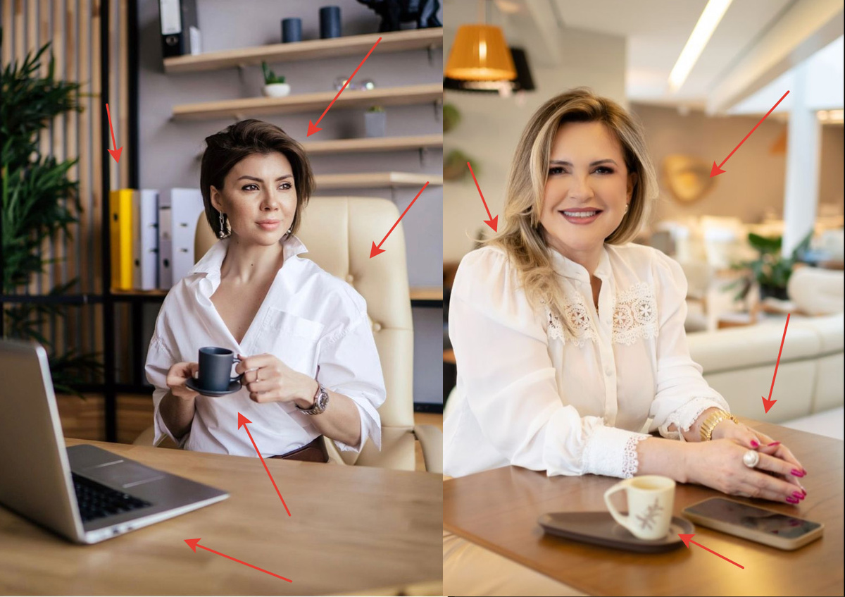 В этом посте я разбираю 2 фото. Оба экспертные. Они сняты с одним и тем же посылом: «Женщина-эксперт за столом».
