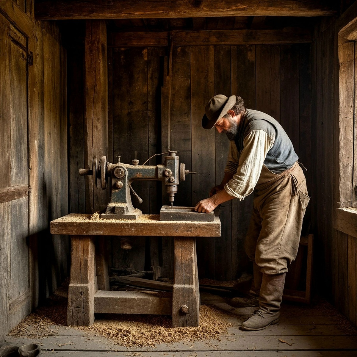 Далее мне нужно было погрузиться в одну из своих жизней чтобы понять почему в этой сегодняшнем воплощении у меня такая страшная аллергия. И вновь туман перед глазами и ..странный образ непонятного мне станка. вокруг темно а я вижу этот станок , с помощью которого явно что то сверлят, он очень старый, я таких и не выдавал никогда. Теперь мне нужно было понять что еще находиться вокруг меня. И я увидел мужчину, серьезный, хмурый, на нем защитный фартук. У мужчины большая длинная не ухоженная борода и вся это комната, это сарай из досок без света. В нем полно пыли, древесной стружки( стоит заметит что меня сейчас тоже идет аллергия на пыль и некоторые породы древесины ). Этот деревянный сарай из досок, сейчас на улице тепло и день, но мужчина сам себя запер и оградил работой. Я вижу что он один, но не понимаю причин за, что он так себя не любит и почему живет таким бирюком.