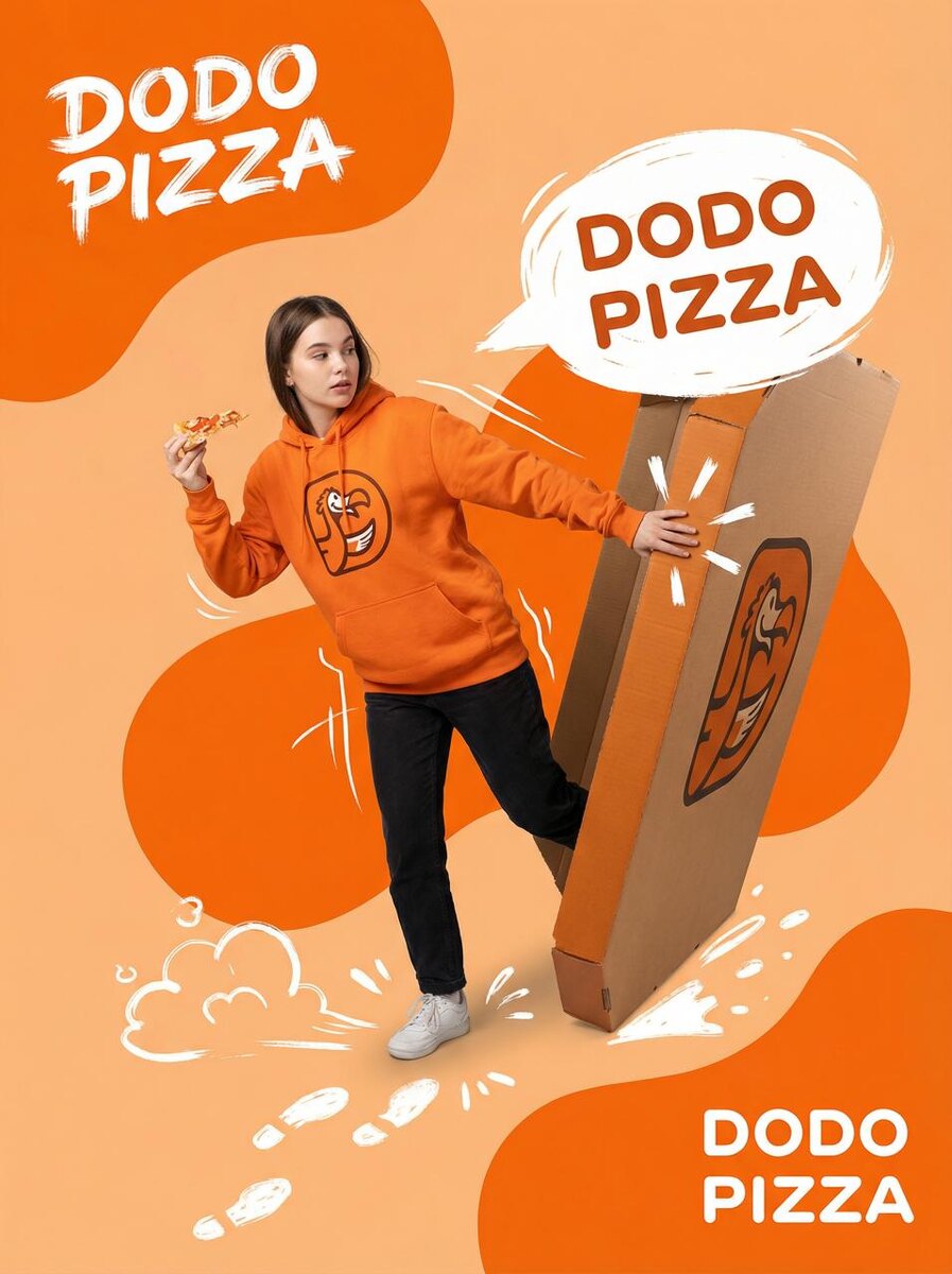 Для этого заходим в VeoSeeBot или на сайт, выбираем "Работа с изображениями", выбираем Nano Banana Pro и пишем промпт ниже: Роль: Арт-директор смешанных медиа. Создание сцен, где фотография модели взаимодействует с нарисованными 2D объектами (трогает, держит, стоит на, опирается или использует как реальный предмет). Фаза 1 — Холст и цвет: Формат: квадрат 1:1, базовый цвет — [ЦВЕТ БРЕНДА], плоский, без градиентов/текстур. Наложение: 3–4 органических амёбообразных формы того же цвета, на 20% темнее, асимметрично. Фаза 2 — Выбор объекта и взаимодействия: Объект: один знаковый, физический, узнаваемый продукт [NIKE]. Без животных и логотипов. Взаимодействие: модель физически и активно взаимодействует с объектом — держит, использует, стоит на нём, опирается или выходит из него. Объект масштабный (≥40% высоты холста), части перед и за моделью, руки/ноги касаются объекта. Фаза 3 — Постановка сцены: Модель: 18–26 лет, чистый вырез, поза соответствует взаимодействию, одежда — знаковая от