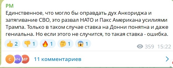 Это моё предположение от 3 февраля в одной недружественной соцсети приобретает реальные очертания: Трамп сегодня заявил, что всерьёз задумался о выходе страны из НАТО, поскольку страны альянса не присоединились к войне против Ирана, а также то, что НАТО — это «бумажный тигр», и вопрос о выходе Америки из оборонного договора теперь "не подлежит пересмотру". Да, Трамп о таком намерении заявлял неоднократно, но после повторного переизбрания и в течение почти всего прошлого года он отрицал такую возможность. Более того, при нём США фактически стали усиливать НАТО, запустив милитаризацию Европы и увеличив бюджет. Споры по Украине, убеждён, носили ситуативный характер — Вашингтон просто хотел спихнуть финансирование ВСУ на Европу. Шум вокруг Гренландии был первым реальным звоночком о расколе внутри НАТО. А вот агрессия против Ирана стала уже серьёзным фактором — точнее, тот факт, что союзники США по НАТО не захотели ввязываться в эту драку напрямую. С учётом, что НАТО появился и всегда сущес