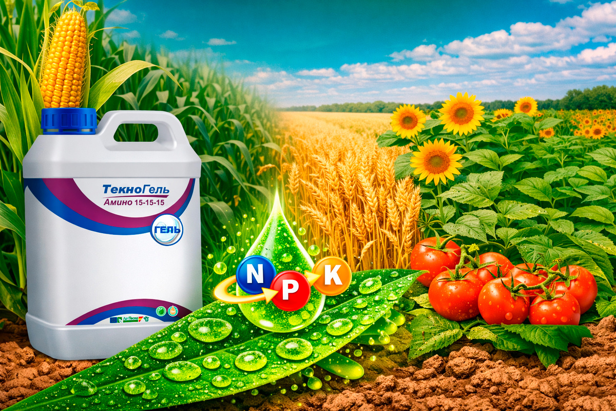 Даже при хорошем уровне питания растения часто теряют часть урожая из-за стресса: засуха, перепады температур, химическая нагрузка после обработок. Один из способов снизить эти потери — листовые подкормки с аминокислотами. Текногель Амино 15-15-15 — это комплексное удобрение, содержащее: Главная особенность — гелевая форма, а не сухое удобрение. В отличие от обычных удобрений: Проще говоря, растение успевает получить больше элементов питания. Наиболее эффективно: По данным хозяйств: 🌾 зерновые — +3–7 ц/га