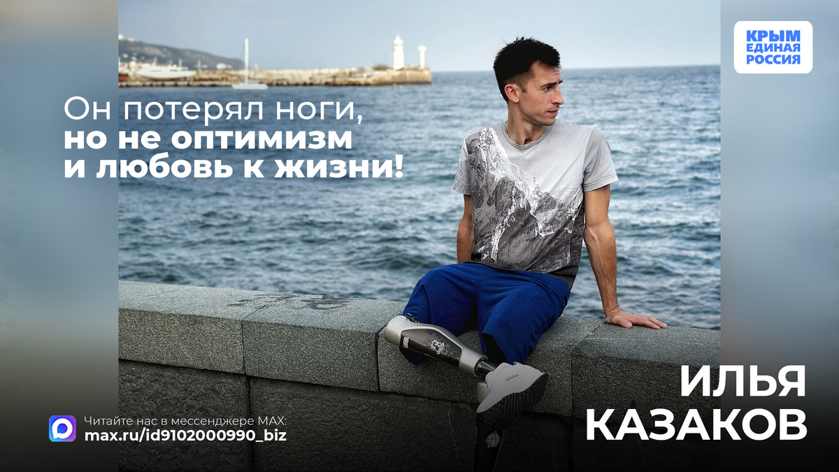 Его история – пример несгибаемой силы воли и мужества. Ветеран морской пехоты, крымчанин Илья Казаков ушёл добровольцем на СВО. Лишился обеих ног в результате ранения. Благодаря поддержке семьи смог преодолеть все удары судьбы и стать примером для многих бойцов с ранениями. С 2024 года Илья Казаков реализует проект, направленный на поддержку военнослужащих, получивших травмы в ходе военных действий. Он посещает госпитали по всей России, взаимодействует с волонтерами, вдохновляет и мотивирует ребят. Наш герой - железный человек с огромным сердцем, чувством юмора и любовью к жизни! Поддержать Илью Казакова и проголосовать за его проект «Сила духа: Несломленные» в номинации «С передовой СВО в муниципалитет» можно перейдя по прямой ссылке https://pos.gosuslugi.ru/lkp/slujenie-2026/174/. Пройдите авторизацию на Госуслугах, а затем вернитесь на страницу премии «Служение». #ЕдинаяРоссия #ЕР82 #своихнебросаем #мывместе #Zaмир
