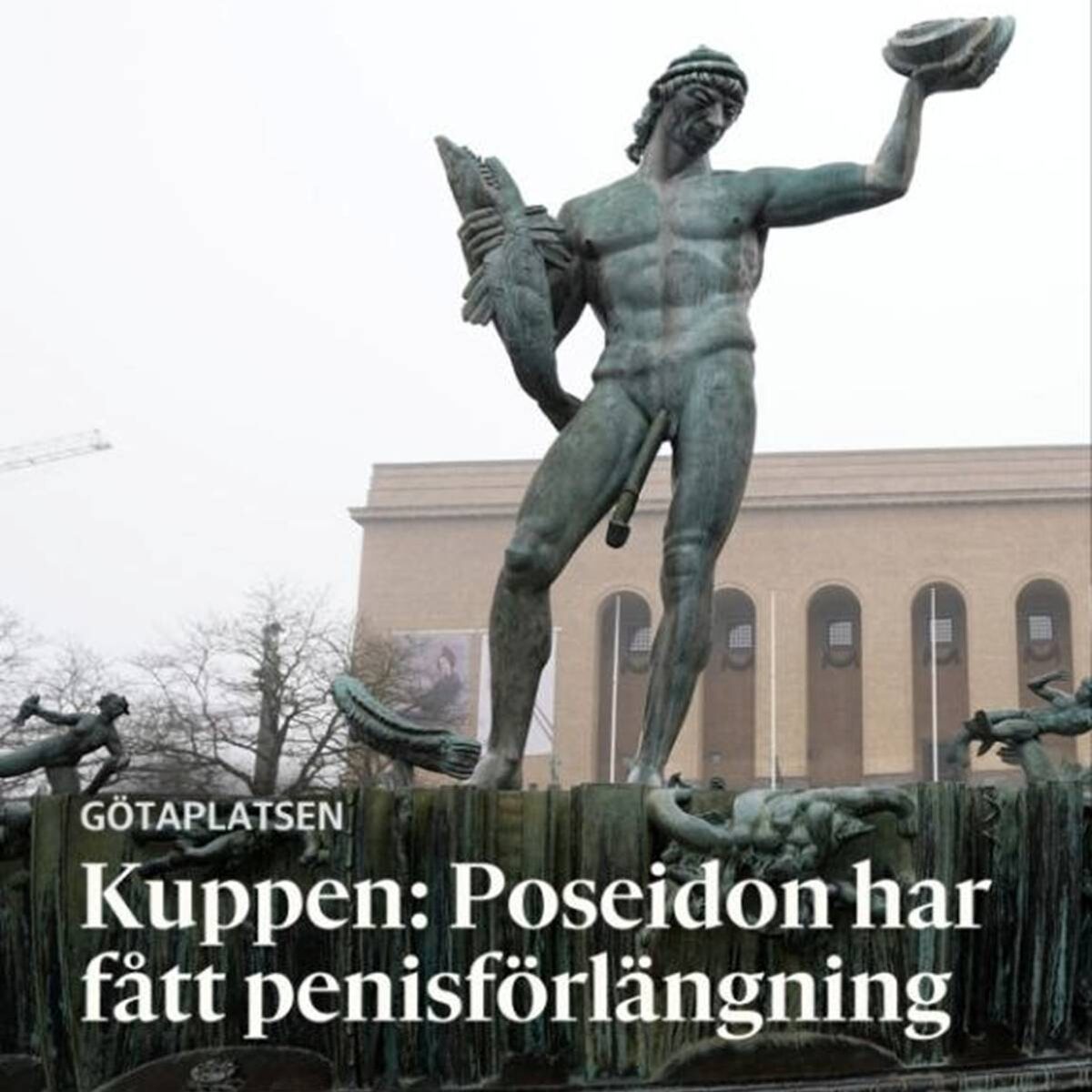 💡Первоапрельская шутка в Гётеборге: шутники удлинили достоинство скульптуры Посейдон на Гётаплатс