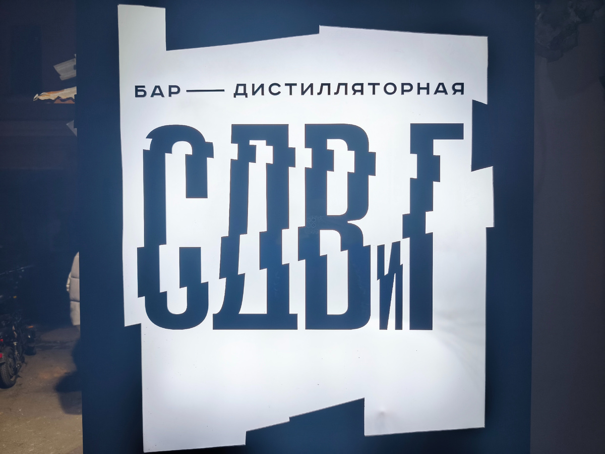 В феврале владелец бара Koza открыл второе заведение. Выждав время на обкатку и наладку, я наконец до него добрался. Находится бар-дистилляторная «СДВиГ» прямо у выхода из метро Сухаревская, но если не знать о его существовании, то отыскать его будет непросто. Поможет лишь уверенный нырок в нужную арку, где уже можно увидеть его вывеску рядом с пунктом выдачи заказов имени гражданки Бакальчук Ким. Внутри мини-зал с контактной барной стойкой и дальний большой зал с низкой посадкой, удобной мягкой мебелью, живой зеленью и коллекцией разноформатных зеркал в багетных рамах. Если вы бывали в «Козе» и ожидаете чего-то похожего, то я вас расстрою: кирпичные стены, отборное музло и один владелец, — вот, пожалуй, всё, что роднит эти бары. Несмотря на название для зумеров, план, видимо, был сделать заведение более «взрослое» и «зрелое». Меню лаконичное и, к счастью, не изобилует кляром и фритюром. Здесь и рамен, и запечённый камамбер, и крылышки, и свиные рёбра. «Завтрак в маке» подаётся в вече
