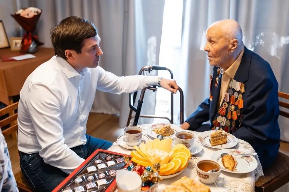 Мэр Челябинска Алексей Лошкин поздравил с днем рождения 101-летнего ветерана Великой Отечественной войны Николая Николаевича Жарова. Этот визит стал особенно значимым, поскольку юбилей ветерана совпал с 1 апреля. Градоначальник отметил, что в доме Николая Николаевича его всегда встречают с теплотой и радушием. В прошлом году он уже дважды навещал ветерана: вручал памятную медаль к 80-летию Победы и поздравлял с его столетием. Обе встречи были наполнены душевностью и теплом. «Я пришел поздравить Почетного гражданина Челябинска, ветерана Великой Отечественной войны. Он с нетерпением ждет гостей, радуется каждому новому дню и не теряет интереса к жизни», — рассказал Алексей Лошкин. На этот раз разговор не касался военных подвигов и трудностей прошлого. Вместо этого мэр обсудил с ветераном повседневные дела и современную жизнь города. Выяснилось, что Николай Николаевич внимательно следит за событиями в Челябинске: читает местные газеты и смотрит новости. «Это искренне удивляет и радует», —
