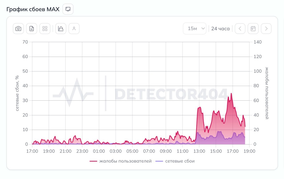 Судя по графику жалоб, число обращений начало резко расти днём и продолжило увеличиваться к вечеру. Пользователи сообщают, что в сервисе не отправляются сообщения, не загружаются фотографии и видео, а также не работают звонки. У части пользователей возникают проблемы со входом и общей загрузкой приложения.