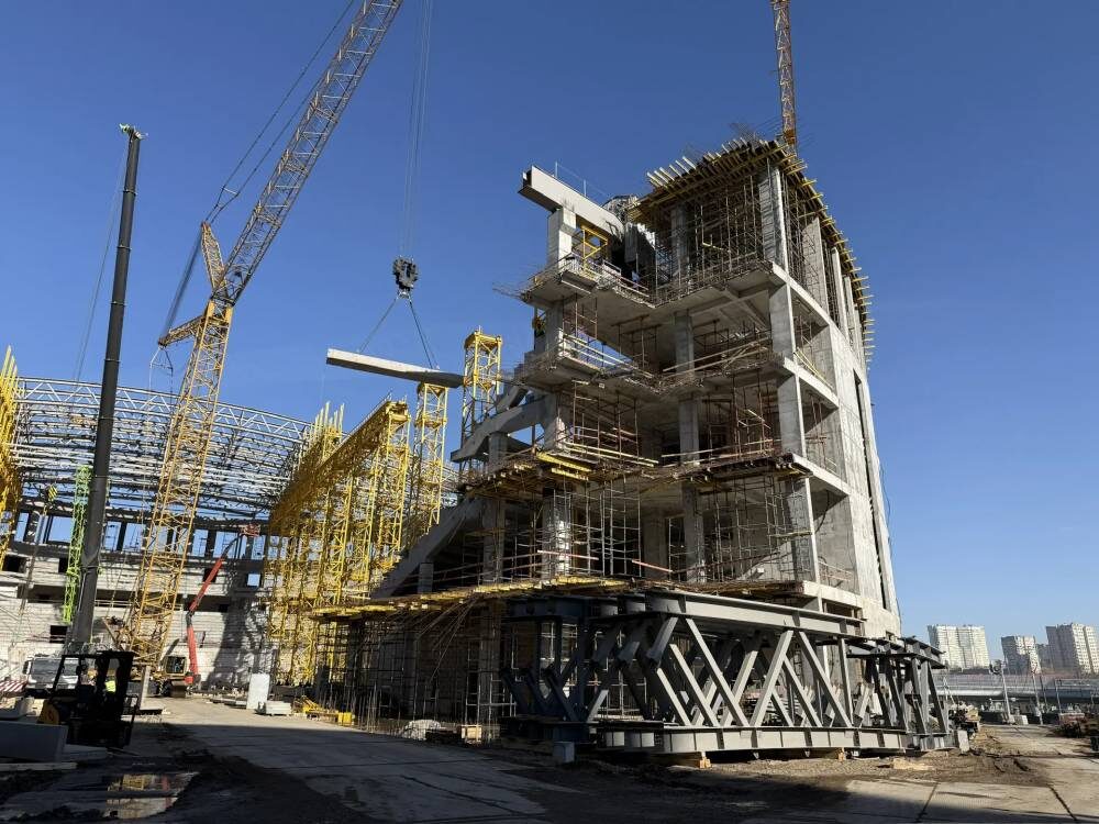 Общий процент готовности арены в районе ДКЖ – 25 %, об этом сообщили в Фонде развития Пермского края. Сейчас рабочие монтируют вентиляцию, выпуски канализации. Кроме этого смонтирован тестовый участок облицовки здания. Это позволит оценить визуальный вид будущей арены, цветовые решения, а также выбрать крепежные элементы фасада – он будет закрыт декоративными панелями с динамической подсветкой. На 5-м этаже завершается монтаж металлоконструкций опорной балки для кровли, осталось смонтировать семь сегментов. В феврале на объекте установили первую большепролетную ферму конструкции кровли. Сейчас их уже девять единиц. Всего на объекте будет 45 таких ферм. Длина самой короткой составляет 33,5 метра, самой длинной – почти 100 метров. Все конструкции будут установлены на арене до конца августа, параллельно будут вестись работы по монтажу кровли. Напомним, новый спорткомплекс имеет общую площадь 79 тыс. кв. метров, пять наземных этажей и один цокольный этаж, Общая высота – почти 45 метров. Зд