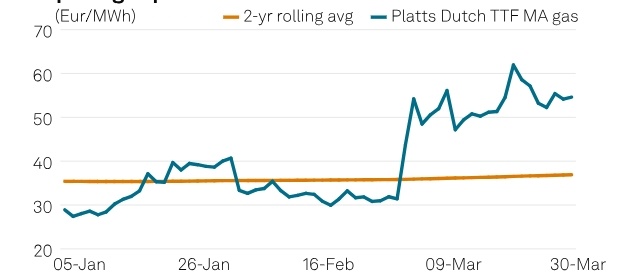 Прогноз цен на электроэнергию во втором квартале значительно различается по всей Европе: больше всего пострадают рынки, цены на которые напрямую зависят от цен на газ, такие как Италия и Великобритания, в то время как цены на электроэнергию во Франции и на Пиренейском полуострове остаются независимыми от других рынков из-за переизбытка предложения от солнечной и атомной энергетики.