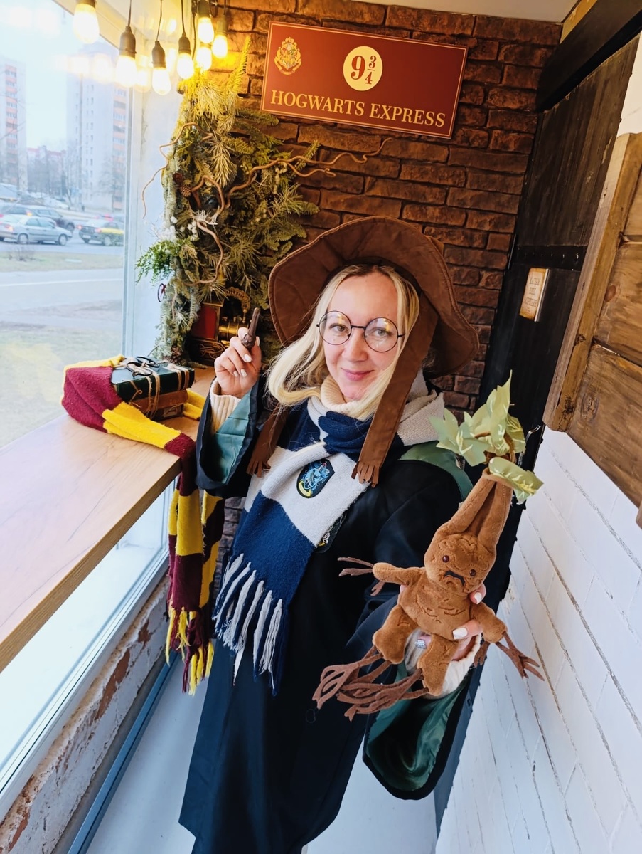 Ох, тут есть где разгуляться поклонникам Гарри Поттера, это кафе в стилистике знаменитой саги. Оно тоже небольшое, скорее кофейня, и в основном здесь напитки и десерты, но несмотря на это, здесь мы задержались. Пока все детали пересмотришь: магические книги, письма на потолке, мандрагора и лампы-пауки. На каждом столике найдутся волшебные палочки для антуража, можно и перевоплотиться в чародея, примерив магические шляпы и мантии. Десерты не сказать, что дешевые, но очень забавные. В общем, для поднятия настроения и необычных фото - отлично!