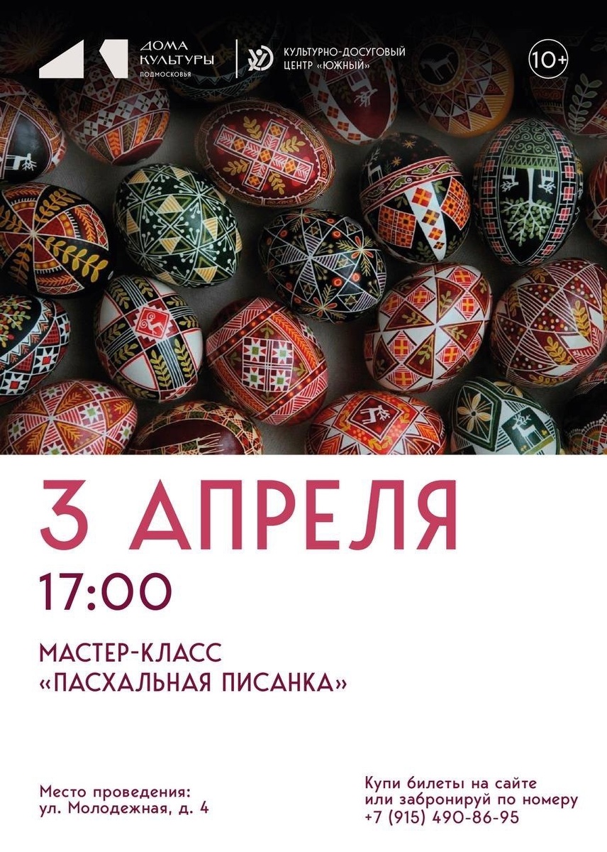 » Приглашаем вас на мастер-класс, где мы: ☀Погрузимся в мир традиционной символики (что означают звезды, бесконечники, солярные знаки); ☀ Освоим технику письма воском (писанок); ☀Пройдем путь от светлого к темному, снимая слои за слоем; ☀ Уйдете с готовой авторской писанкой, которую создали сами. Вам не нужен опыт. Нужно лишь желание прикоснуться к настоящей традиции и провести время вдумчиво и красиво. 🚫 Возраст: 10+ 📆 03.04.2026 🕒 17:00 🏢 КДЦ "Южный" 📍 г. Подольск, ул. Молодежная, 4 💰 Цена: 600 ₽ 🔗 Записаться: +7 915 490 86 95 ⭐Поддержать канал голосом 🍰Где поесть в Подольске Мастер - класс ✅ Мероприятия Подольск https://dzen.ru/id/66ed500f7b5671493eca3fd6 https://vk.ru/podolsk_events http://dzen.ru/podolsk_events