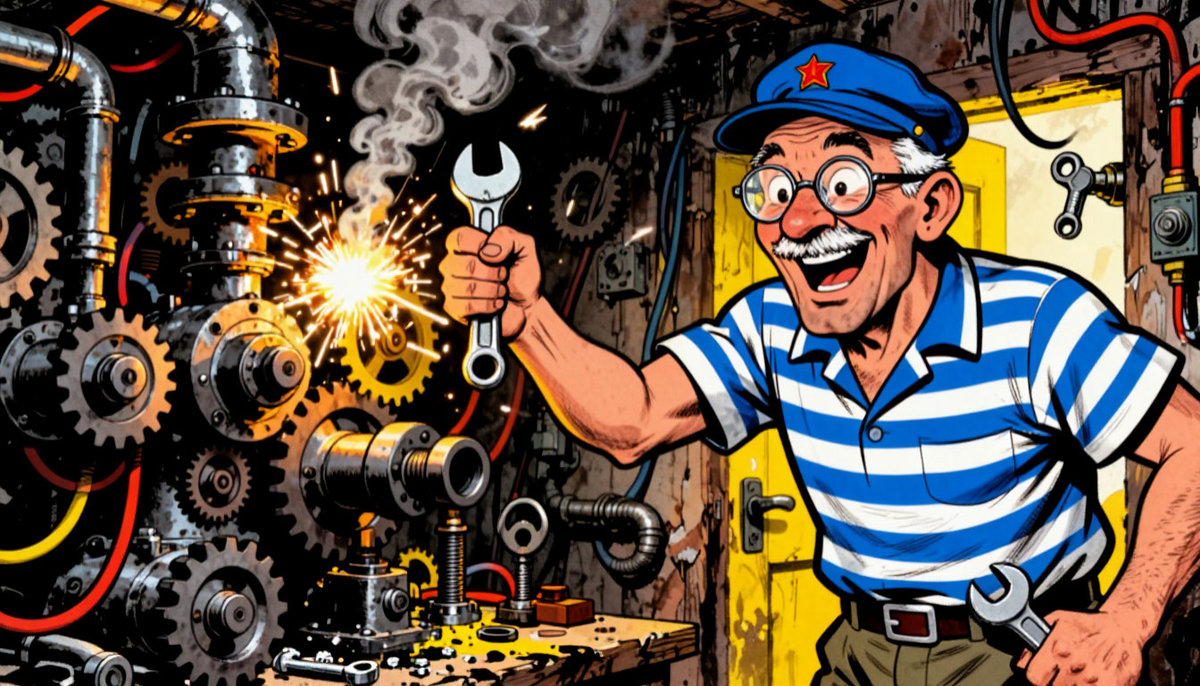 Встречаются в деревне два старых приятеля — дед Кузьмич и дядя Гриша. Кузьмич весь взъерошенный, в лаптях на босу ногу, а в руках — какой‑то замысловатый агрегат с проводами, трубками и ржавым вентилем. — Эй, Гриша, глянь, чё я в сарае нашёл! — орёт Кузьмич, размахивая штуковиной. — Это ж, братец, чудо техники! Генератор вечного движения, не иначе! — Да ну тебя, Кузьмич, — отмахивается Гриша. — Опять ты свои фокусы. Вечное движение — это когда тёща по дому шастает, а не железяки всякие. — Да ты не умничай, — бурчит Кузьмич. — Я тут всю ночь колдовал, схему чертил, провода мотал… Сейчас запустим — и у нас свет будет круглый год, да ещё и соседям продадим! Гриша скептически прищуривается: — Ну‑ка, дай глянуть… О, гляди — тут провод оторван, тут трубка сопливит, а вентиль вообще какой‑то левый, будто от самовара. Ты это из чего собрал? Из старого велосипеда и бабушкиных очков? — Не твоё дело, — ворчит Кузьмич. — Главное — принцип! Я тут всё рассчитал: энергия берётся из воздуха, перерабат