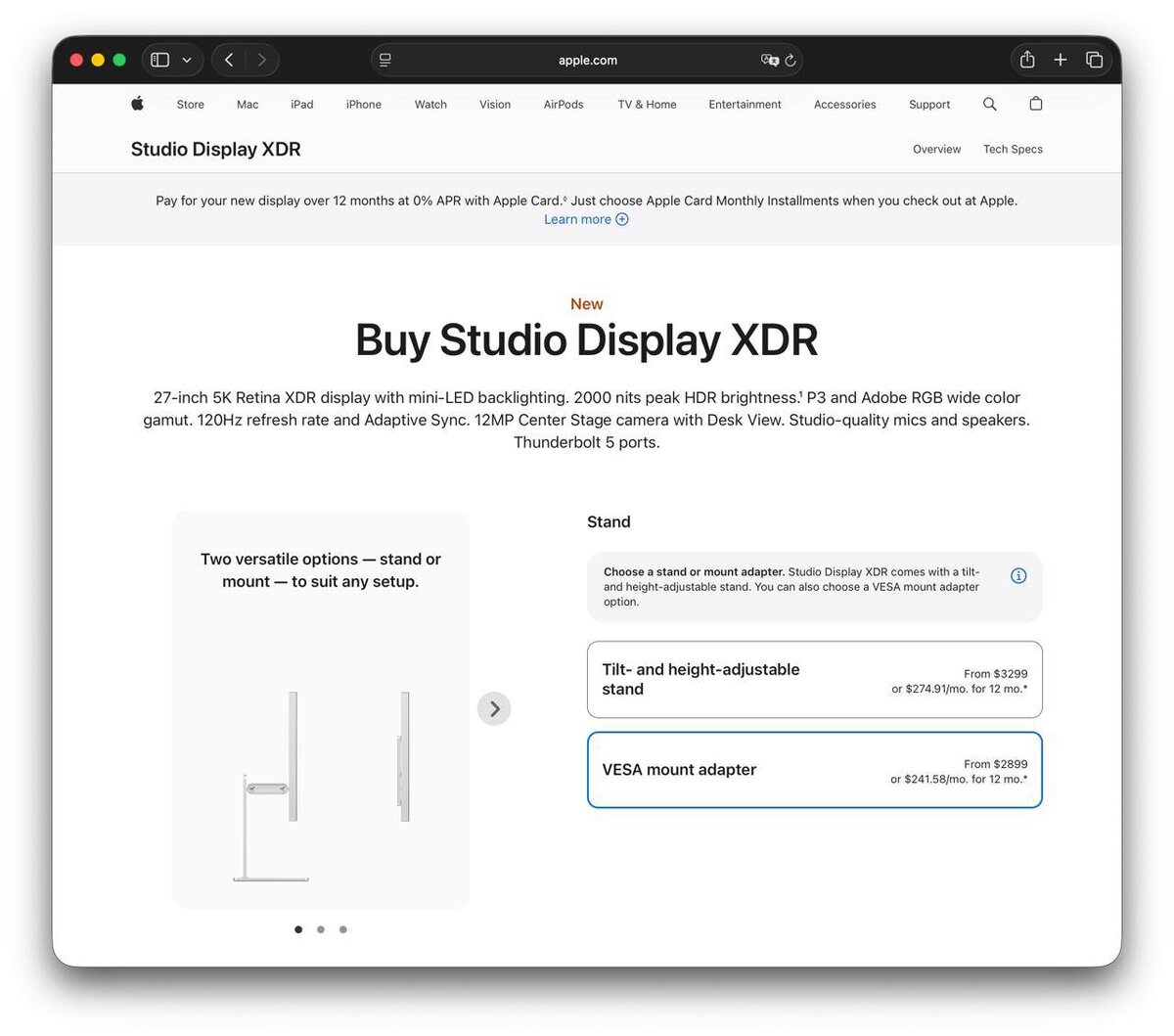 Теперь комплектации с ножкой и подвесом VESA отличаются по цене С ножкой $3300 С подвесом $2900 Обзор Studio Display XDR - монитор мощнее MacBook https://youtu.be/4sZ7ZojODD8