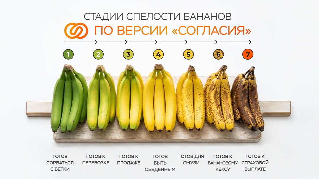 Это не шутки! «Согласие» выплатило около 1,3 млн рублей за испорченные бананы по договору страхования ответственности перевозчика. Дело было в Красноярске. Вместо спокойной дороги фрукты попали в настоящую «сауну»: в прицепе фуры нарушился температурный режим, бананы перезрели, почернели и потеряли товарный вид. Клиент получил выплату, а бананы... ну, хотя бы согрелись в Сибири. И это не единственная «вкусная» выплата нашей компании! В блоге рассказываем про сырную трагедию, страшный сон кофеманов и 500 000 литров осиротевшего пива. Даже в День смеха реальные риски — от бананов в фуре до спутников на орбите — мы берём на себя серьёзно и без улыбок!