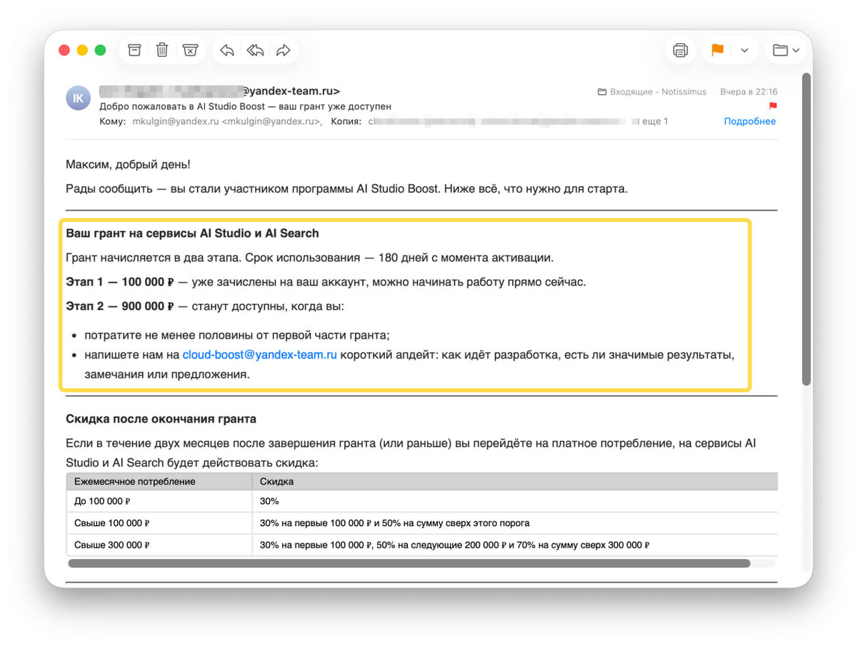 Пока 100к на балансе, дальше есть шанс получить 900к. Начнем переключаться на их облако, это мы делаем в clickfraud.ru систему RAG (умный ИИ- виджет на сайт) для клиентов. Зачем делаем? Retention, т.к. у нас ведь есть скрипты и добавить с согласия клиента умный js-виджет, которые нон-стоп общается с пользователями - дело не хитрое. Для этого парсим сайт, векторизуем контент, режем на чанки и т.п. (звучит просто, к осени сделаем). В общем дерзайте, не вижу проблем, почему вы не можете, если мы смогли :) @clickfraud.ru