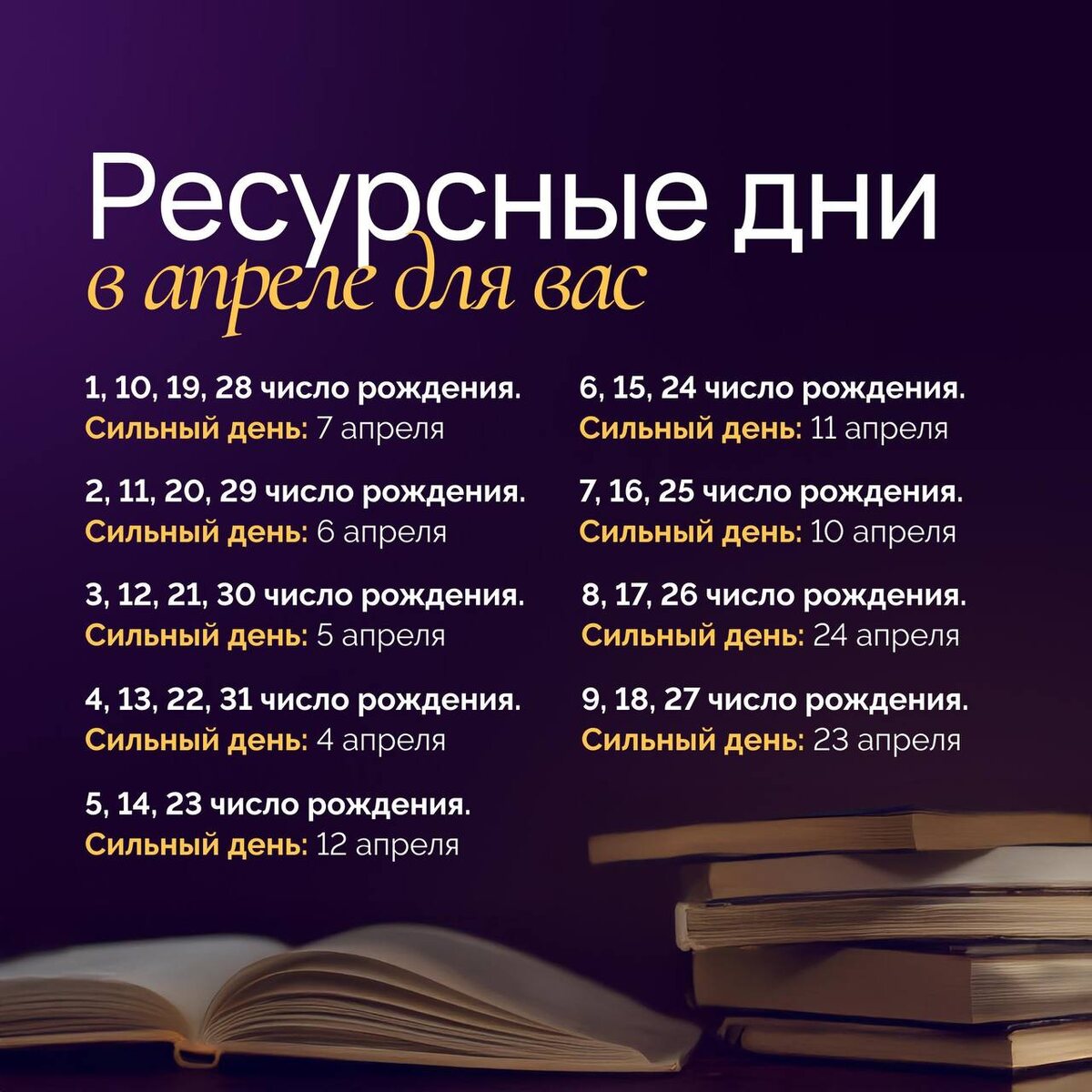 🔥 Какие даты в апреле будут для вас самыми ресурсными — держите шпаргалку.