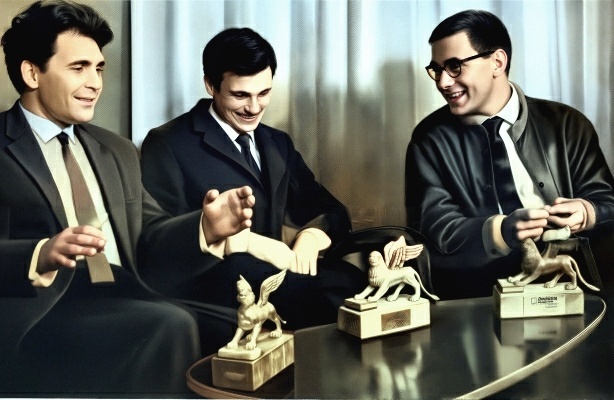 И все три картины получили главные призы в своих номинациях — «Золотых Львов». «Иваново детство» — главный приз в конкурсе взрослых фильмов, «Дикая собака Динго» — в конкурсе фильмов для юношества, а «Мальчик и голубь» — в конкурсе фильмов для детей. Вот они, венецианские триумфаторы со своими «Львами».