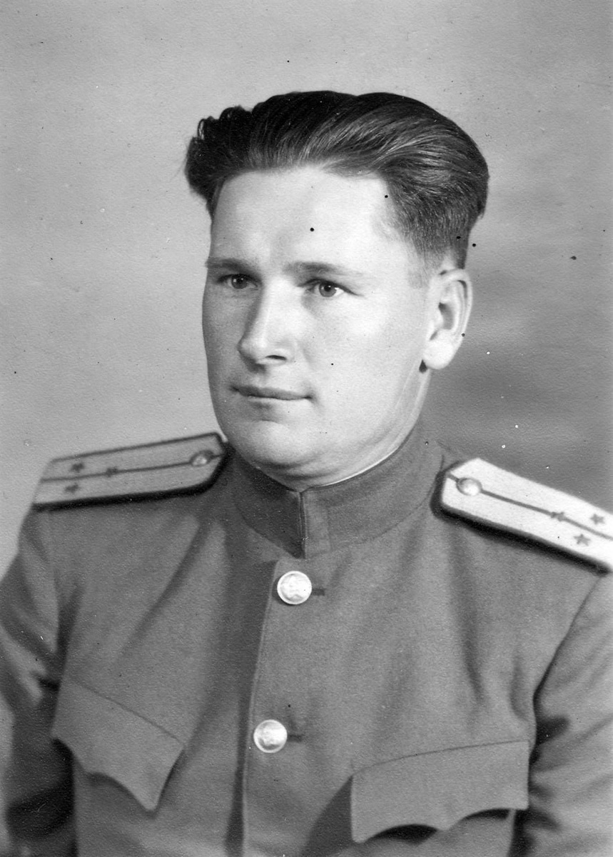 Старший лейтенант Дундич Григорий Яковлевич в закрытом кителе со съемными повседневными погонами образца 1943 года.