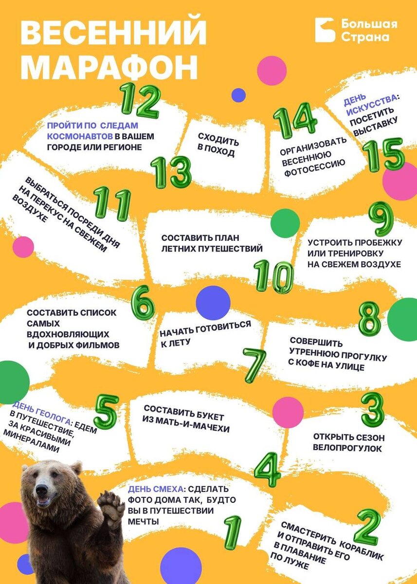 ! ✨ Подготовили для вас 30 заданий, которые помогут вам прожить этот весенний месяц ярко и весело 1️⃣Задания можно выполнять в комфортном для вас порядке 2️⃣ Фото и видео выполненных заданий прикрепить к этому посту ⬇️ 3️⃣Будем рады отметкам в историях, с радостью сделаем репост Начинаем?)🌸🇷🇺 🇷🇺 Мы ВКонтакте | Мы в MAX