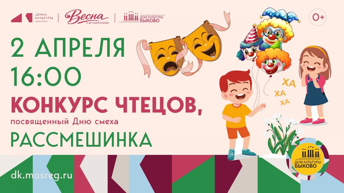 ✨ КОНКУРС ЧТЕЦОВ "РАССМЕШИНКА", ПОСВЯЩЕННЫЙ ДНЮ СМЕХА ✍️Заявки принимаются на электронную почту dolgova.sdkb@gmail.com до 30.03.2026 или непосредственно в день конкурса за 1 час до начала. 🤝В заявке необходимо указать: имя и фамилию участника, название учреждения и кружка, имя и фамилию руководителя (если есть), возраст участника, название произведения и его автора. ❗Участие в конкурсе бесплатно 🚫 Возраст: 6+ 📆 02.04.2026 🕒 16:00 🏢 Дом культуры «Быково» 📍 Московская обл., г. Подольск, п. Быково, ул. Школьная, д. 8 💰 Вход свободный❗️ ⭐Поддержать канал голосом 🍰Где поесть в Подольске ✅ Мероприятия Подольск https://dzen.ru/id/66ed500f7b5671493eca3fd6 https://vk.ru/podolsk_events http://dzen.ru/podolsk_events