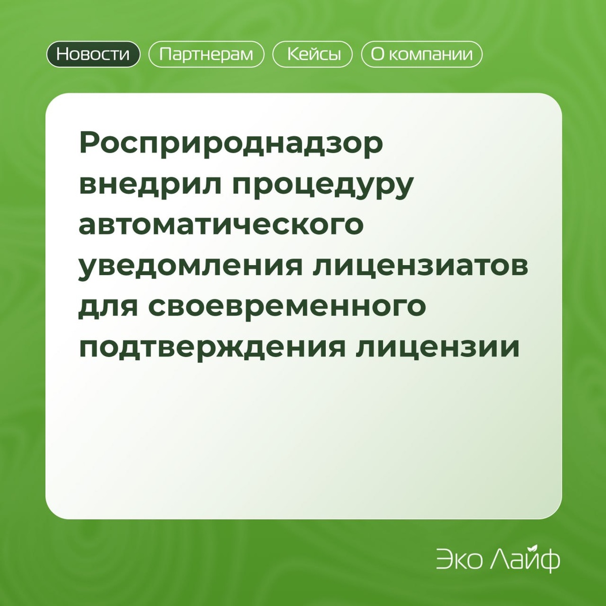 🔍 Росприроднадзором реализован новый функционал, направленный на повышение удобства для лицензиатов и снижение риска пропуска установленных сроков прохождения обязательных процедур. Теперь лицензиаты будут заблаговременно получать уведомление о необходимости прохождения процедуры периодического подтверждения соответствия лицензионным требованиям в отношении лицензии на деятельность по сбору, транспортированию, обработке, утилизации, обезвреживанию, размещению отходов I–IV классов опасности. 🖥 Уведомление будет направляться посредством Единого портала государственных и муниципальных услуг (функций) (ЕПГУ) за 1 год до наступления крайнего срока подачи заявления на подтверждение соответствия. Текст уведомления будет содержать сведения о лицензии, дате наступления срока периодического подтверждения соответствия, а также прямую ссылку для подачи заявления. ⏰ Напоминаем, что периодическое подтверждение соответствия лицензиата лицензионным требованиям проводится каждые три года со дня