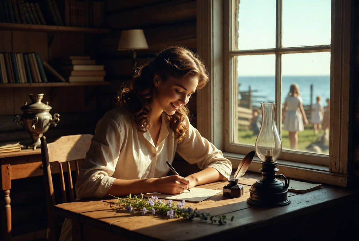 Прошла неделя после свадьбы. Вера уже привыкла к новой жизни — к тому, что просыпается рядом с Иваном, что Катя по утрам прибегает к ним в комнату, что Елизавета заходит каждый день, а Александра Фёдоровна то и дело приносит то пироги, то варенье, то какую-нибудь настойку. В один из таких дней она села за стол, достала чистый лист и написала Льву. «Дорогой Лев! — начала она. — Прости, что долго не писала. Всё никак не могла собраться с мыслями. А теперь, кажется, время пришло». Она писала долго, не торопясь. Рассказывала о свадьбе, о том, как шили платье, как венчались в старой часовне, как пировали потом всем посёлком. О том, как Иван сделал скамейку у моря с надписью на счастье. О том, как Катя называет её мамой, а Ивана — папой. «Ты не представляешь, Лев, что это такое — быть мамой. Я думала, что знаю, но нет. Настоящее материнство — это когда ты просыпаешься ночью и идёшь проверять, не открыла ли она окно, не холодно ли ей, не приснилось ли что-то страшное. Это когда ты впервые слы