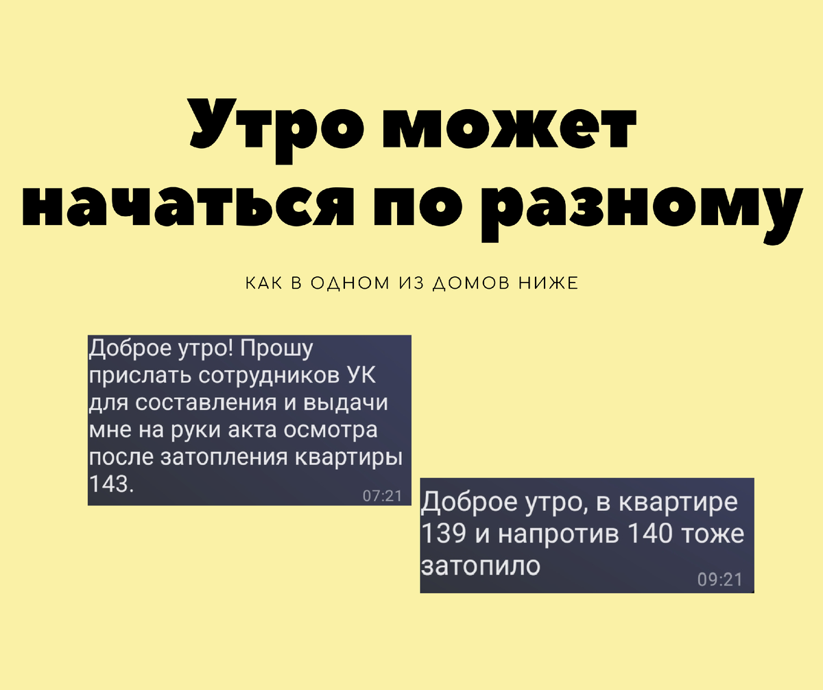Ситуация: коммунальщики включили обратно отопление, и в одной из квартир прорвало батарею. Как итог, три затопленных квартиры.