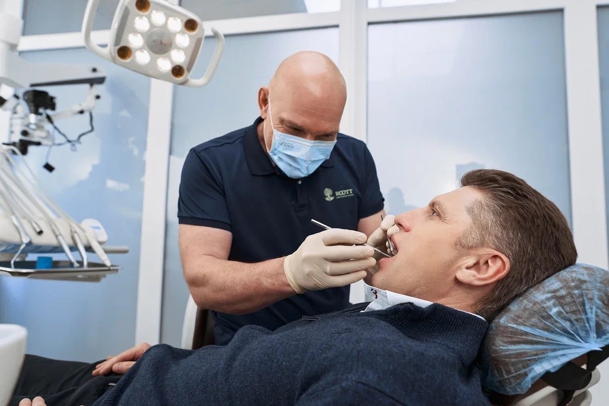 Врач беседует с пациентом, осматривает полость рта и, если нет очевидных противопоказаний, выполняет компьютерную томографию.