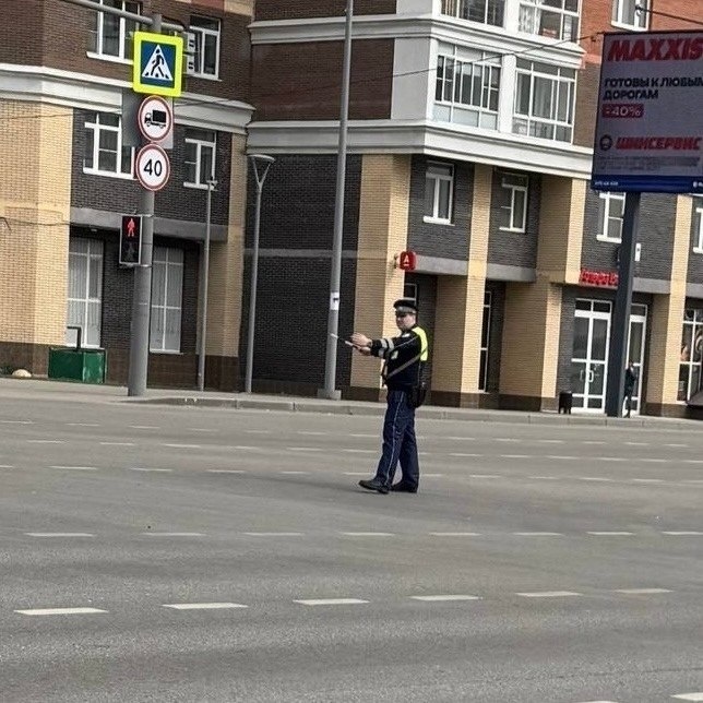 На перекрестке А. Монаховой/Липового парка не работают светофоры, при этом работает сотрудник ГАИ, регулирует движение.