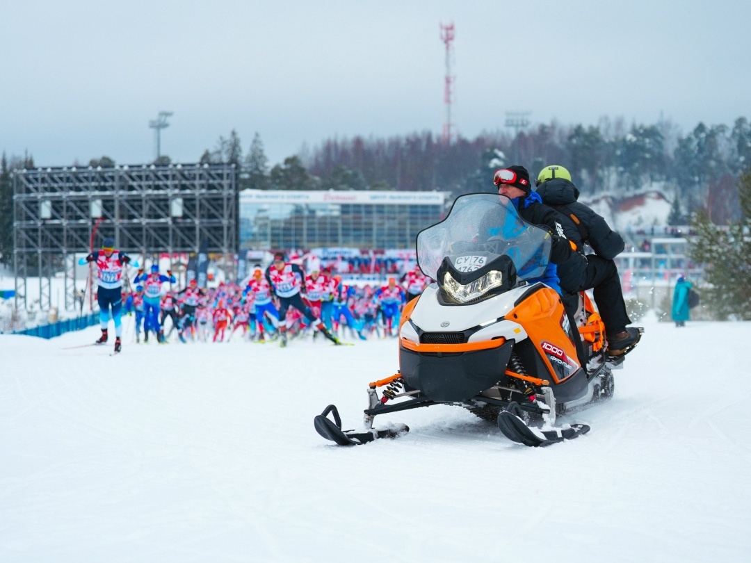За идеальный видеоряд отвечает ведущий инженер-конструктор «Русской механики» Андрей Андреев. На снегоходе Фронтьер 1000 он идет в нескольких метрах перед лидирующим пелотоном, обеспечивая работу оператора. - Ответственность колоссальная. Трасса живая: меняется рельеф, добавляются новые петли и повороты. Нужно одновременно контролировать дорогу, следить за лыжниками в «мертвых зонах» и не мешать работе судей и волонтеров. Ошибаться нельзя, - поясняет Андрей. Подготовка техники здесь специфическая. Чтобы оператор мог работать лицом к лыжникам (спиной по ходу движения), снегоход модифицируют: снимают спинку, устанавливают дополнительные подножки-опоры, а самого пассажира фиксируют страховочными стропами. - Связь решает все. На трассе мы - коллективный разум. Оператор не видит рельефа, я не всегда могу отследить темп спортсменов. Работаем в гарнитурах: он дает команды на ускорение или замедление, я предупреждаю о спусках, уклонах и опасных поворотах, - делится профессиональными секретами