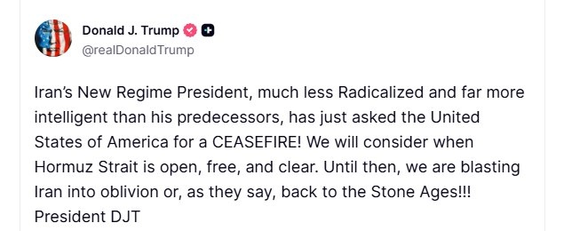 Trump claims 'Iran just asked the United States of America for a CEASEFIRE!'