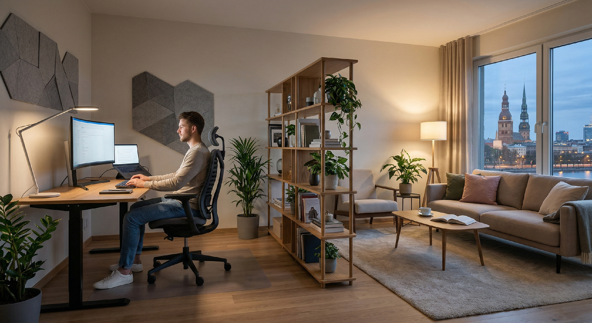Грань между работой и личной жизнью на «удаленке» часто стирается. Если ваше рабочее место — это диван в гостиной, мозг перестает переключаться в режим отдыха. Правильный интерьер для работы дома — это не просто стол и стул, а продуманная экосистема, которая помогает концентрироваться днем и расслабляться вечером. Главная задача такого пространства — функциональная автономия. · Эргономика прежде всего: высота стола и глубина посадки кресла должны соответствовать вашему росту. · Визуальное отделение: рабочая зона должна отличаться от зоны отдыха, даже если они находятся в одной комнате. · Акустический комфорт: расположение мебели должно минимизировать бытовые шумы. 1. Используйте «мягкое» зонирование. Не обязательно возводить перегородки. С этой ролью отлично справится стеллаж или спинка дивана, поставленного перпендикулярно стене. 2. Свет как инструмент. Располагайте стол боком к окну, чтобы избежать бликов на мониторе. Для вечерней работы добавьте лампу с регулируемой цветовой темпера