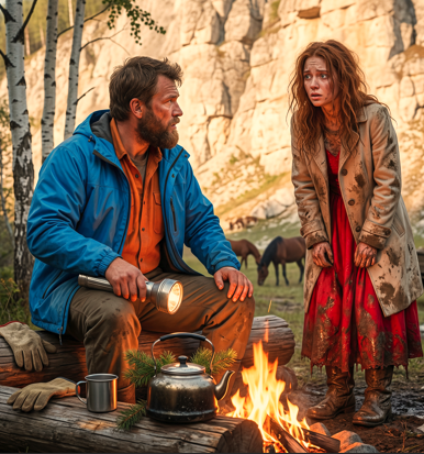 Холодный ветер спускался с Уральских хребтов, забираясь под воротник старой штормовки. Демид сидел на поваленном сухом стволе сосны, вытянув гудящие от дневного перехода ноги к тлеющим углям. В котелке над пламенем медленно закипала вода, распространяя терпкий аромат еловых веток и крепкой заварки. В низине, у самой кромки бурлящей речки, мерно переступали копытами три десятка лошадей. Его табун.